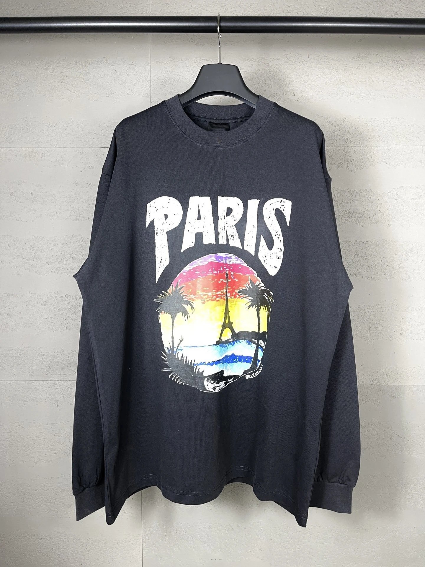 Balenciaga High Version 2025 New Hawaiian Sunset Coconut Tree Iron Tower Pullover